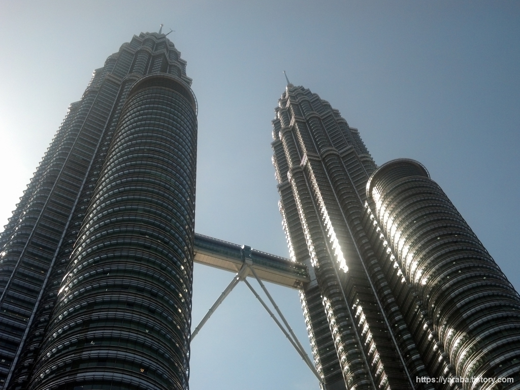 KLCC(Kuala Lumpur City Centre)는 쇼핑몰, 호텔, 페트로나스 트윈 타워(Petronas Twin Towers)등이 몰려 있는 곳. 여러 마천루를 배경으로 사진 찍는 사람들이 많은데 뭐니 뭐니 해도 88층짜리 페트로나스 트윈 타워가 최고의 모델이었다. 구형 스마트폰으로 찍는 스냅사진에는 한 번에 담기 어렵다. 1997년 완공된 이래로 쌍둥이 타워로는 여전히 세계 최고층이라 한다.
