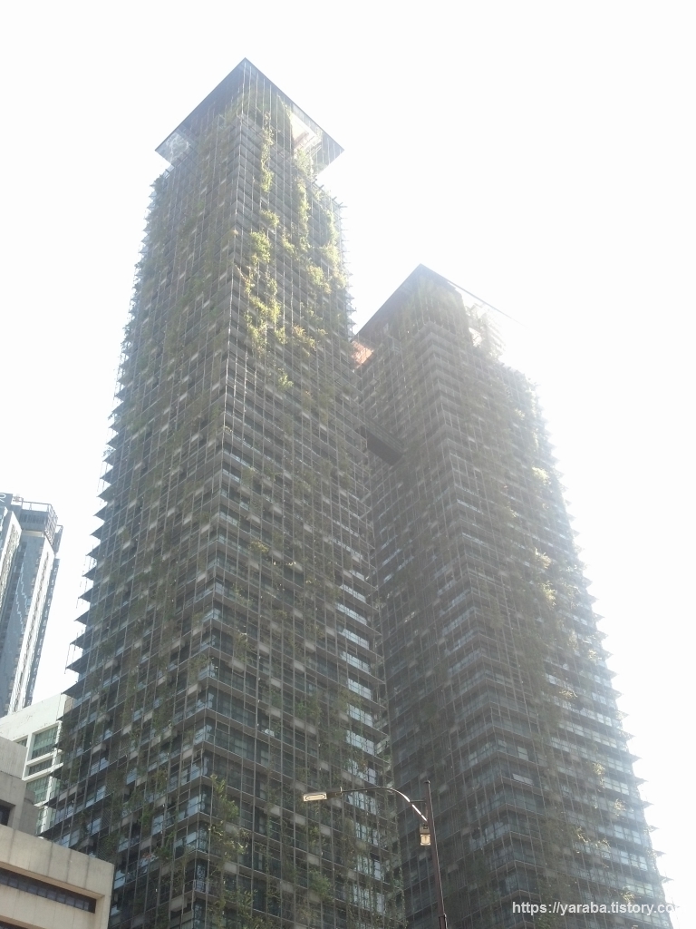그런데, 페트로나스 트윈 타워도 볼만 했지만 내 눈을 사로 잡은 것은 길 건너에 있는 르 누벨 KLCC(Le Nouvel KLCC)라는 아파트였다. 프랑스 건축가 장 누벨(Jean Nouvel)의 작품으로 수직 정원으로 장식한 인상 깊은 아파트였다. 파리에서 만난 수직 정원도 2~3층 높이 였는데 참 대단하다 싶다. 49층짜리와 43층짜리 거주 건물임에도 34층에서 스카이 브릿지로 연결되어 있다.