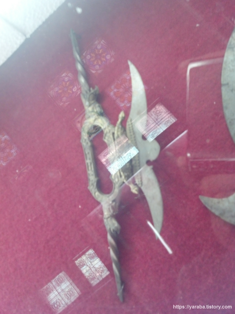 철갑으로 손을 보호하는 큰 칼과 다양한 형태의 단검들. 독특한 무기들이 흥미로왔다.