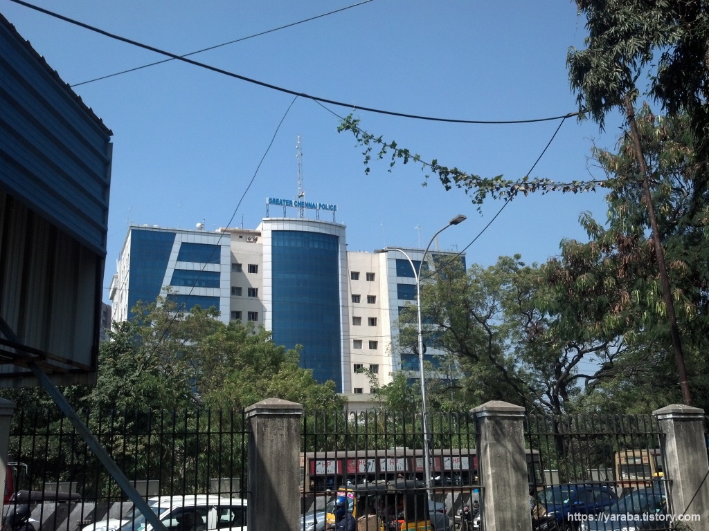 성 앤드류 교회 길 건너편으로는 첸나이 경찰서가 자리하고 있다. 높다란 교회 울타리가 이곳의 현실을 대변하고 있는듯 하다.