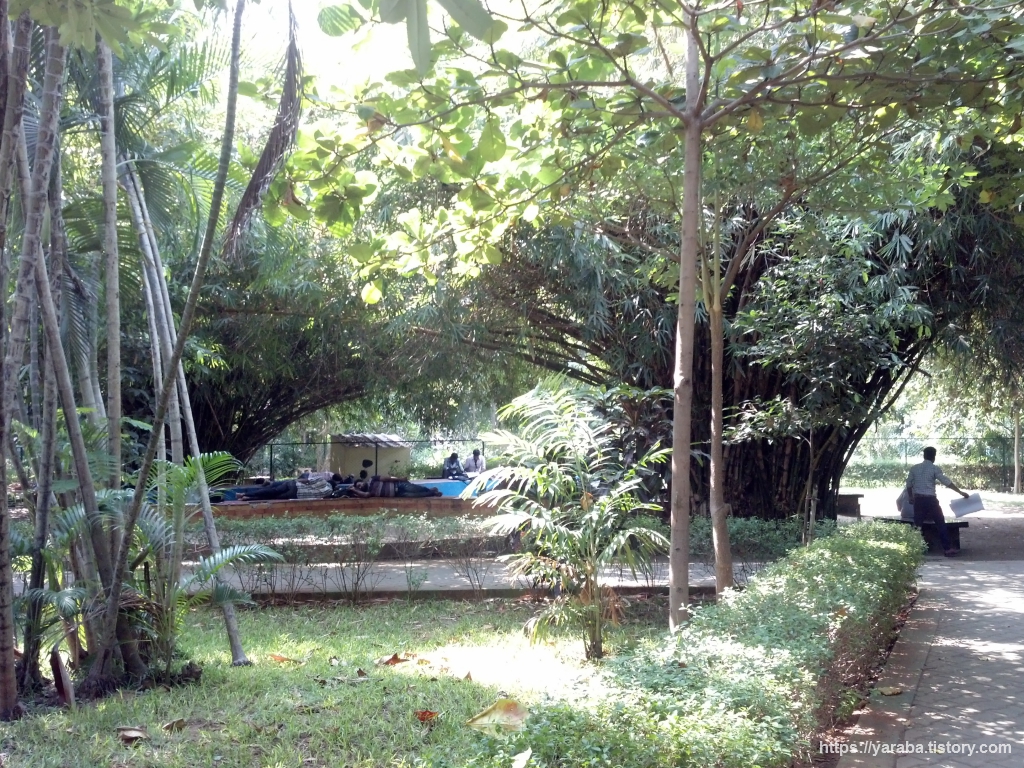 아주머니 몇 분이 떨어진 낙엽을 쓸고 있었고, 아저씨 한분은 물 주기에 여념이 없으셨다. 원래는 연못이었던 자리를 1940년에 공원으로 조성했다고 하는데 이후에 여러 사람의 기부를 통해 공원을 확장했다고 한다. 지금은 첸나이 시에서 관리하고 있다는데 이 정도면 수준급이 아닌가 싶었다.