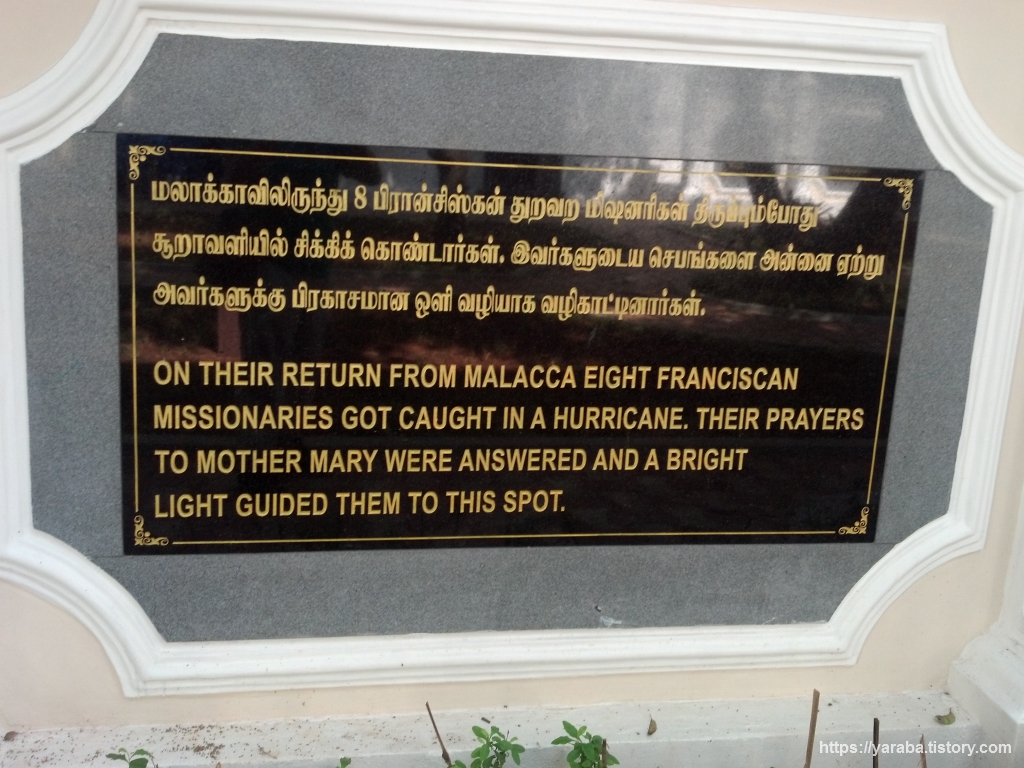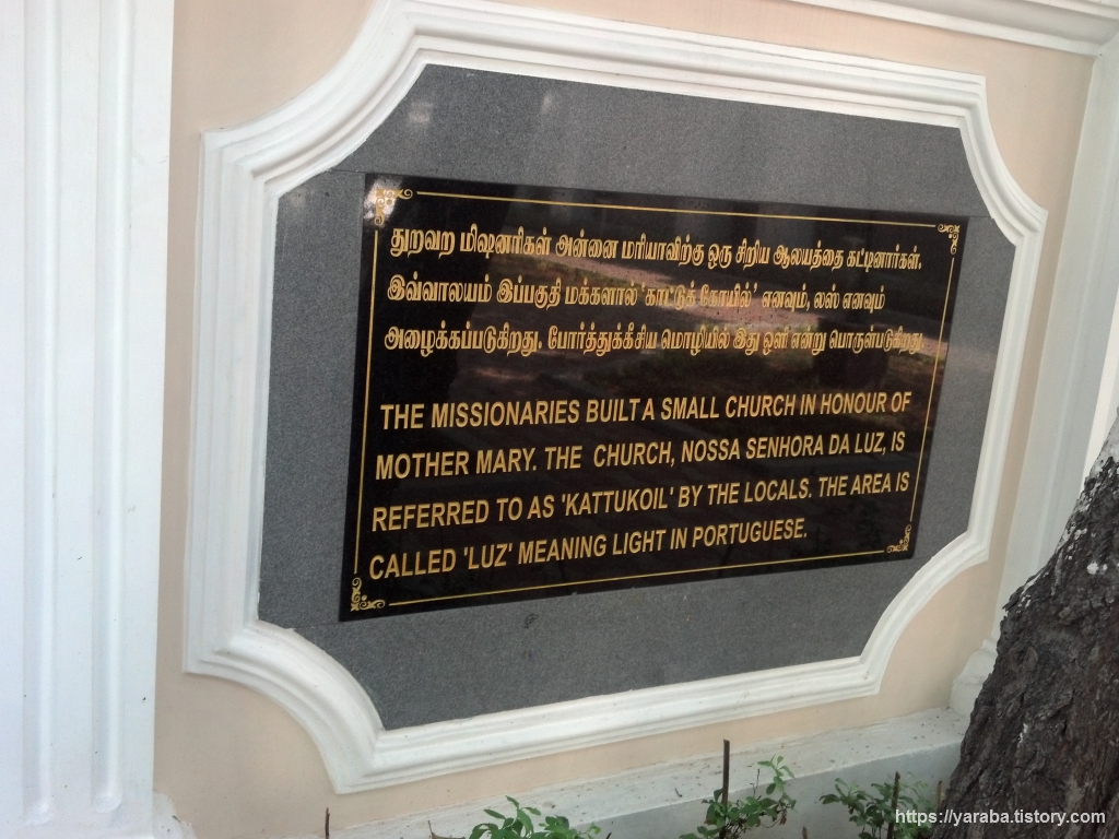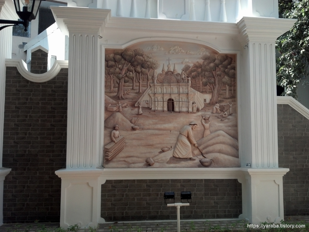 교회 한쪽에는 부조를 통해서 교회가 세워진 과정을 설명하고 있었다. 기초석에 교회가 1516년에 세워졌으며 이는 첸나이에서 가장 오래된 서구식 건물 중에 하나라는 설명을 하고 있다.