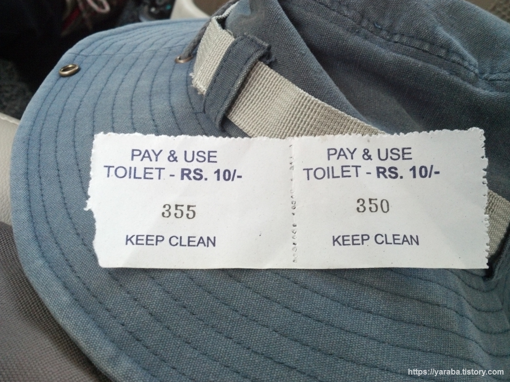 무덤 박물관은 별도의 입장료가 없었지만 화장실은 비싼 입장료를 받는 유료 화장실이었다. 외국인용과 내국인용이 따로 있었는데 외국인용은 1인당 10루피를 지불하면 화장실의 자물쇠를 직접 풀어주는 방식이었고 내국인용은 5루피를 받는다고 했다. 물론 비싼 만큼 화장실은 넓고 깔끔했으며 1인용 세면기까지 마련되어 있었다. ㅎㅎ