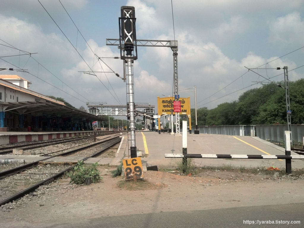 카막쉬 암만 사원으로 가는 길에 만난 칸치푸람 기차역의 모습이다. 여기서 기차를 타면 동부 칸치푸람 역을 거쳐서 첸나이로 올라가는데 중간에 성 도마산 역과 우리가 잠시 다녀왔던 첸나이 에그모어 역을 거쳐서 종착지인 첸나이 비치 역까지 2시간 40분이나 걸린다고 한다.