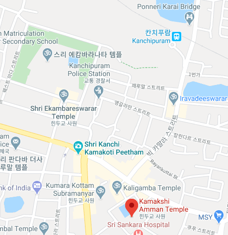 인도 첸나이 여행 중에서 앞선 이틀은 첸나이 시내를 중심으로 박물관이나 유적지, 해변을 다녔다면 오늘은 숙소가 위치해 있는 칸치푸람 시의 힌두 사원들을 방문하기로 했다. 그 첫 번째로 카막쉬 암만 사원(Kamakshi Amman Temple)으로 향한다.