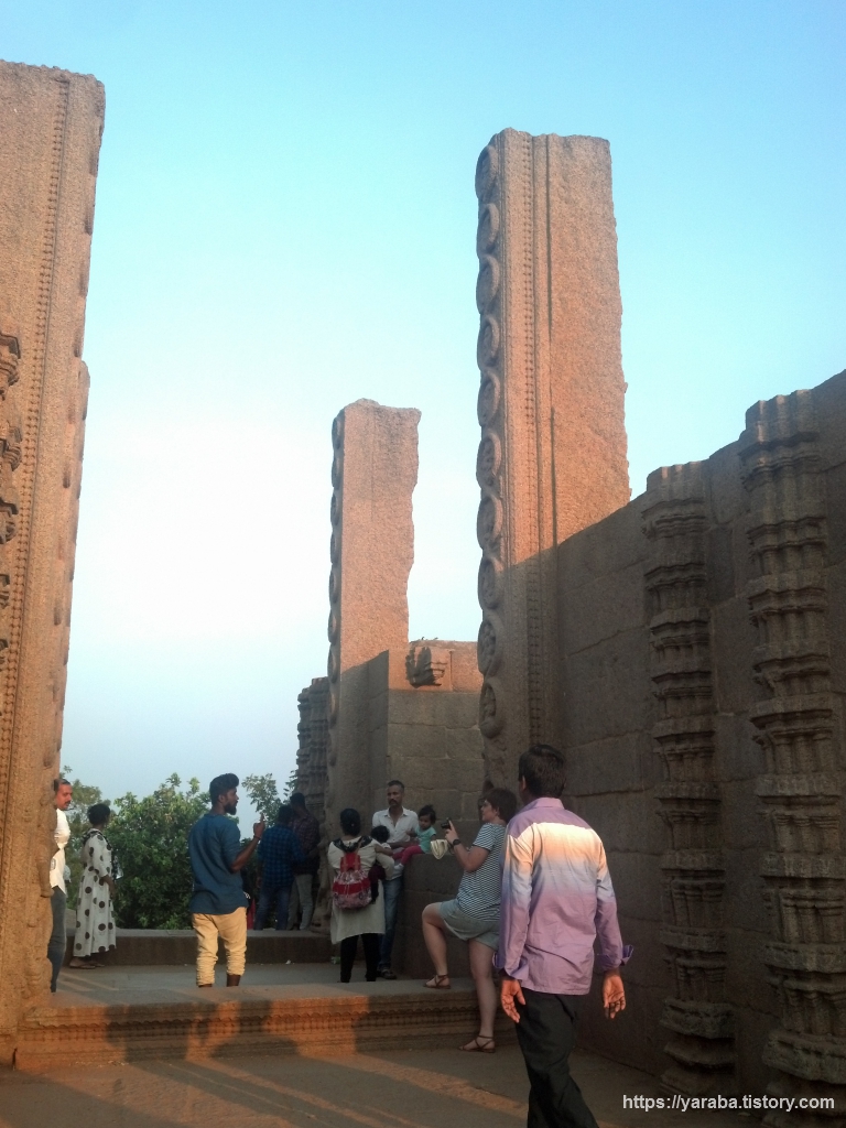안쪽 기둥을 장식하고 있는 야리(Yali, Yyala). 야리는 남인도 사원들에서 발견되는 신화 속 존재로 몸은 사자이고 머리는 코끼리, 사자, 말, 호랑이, 새, 개등의 형상을 하고 있으며 머리를 사람 형태로 하는 경우도 있다고 한다.