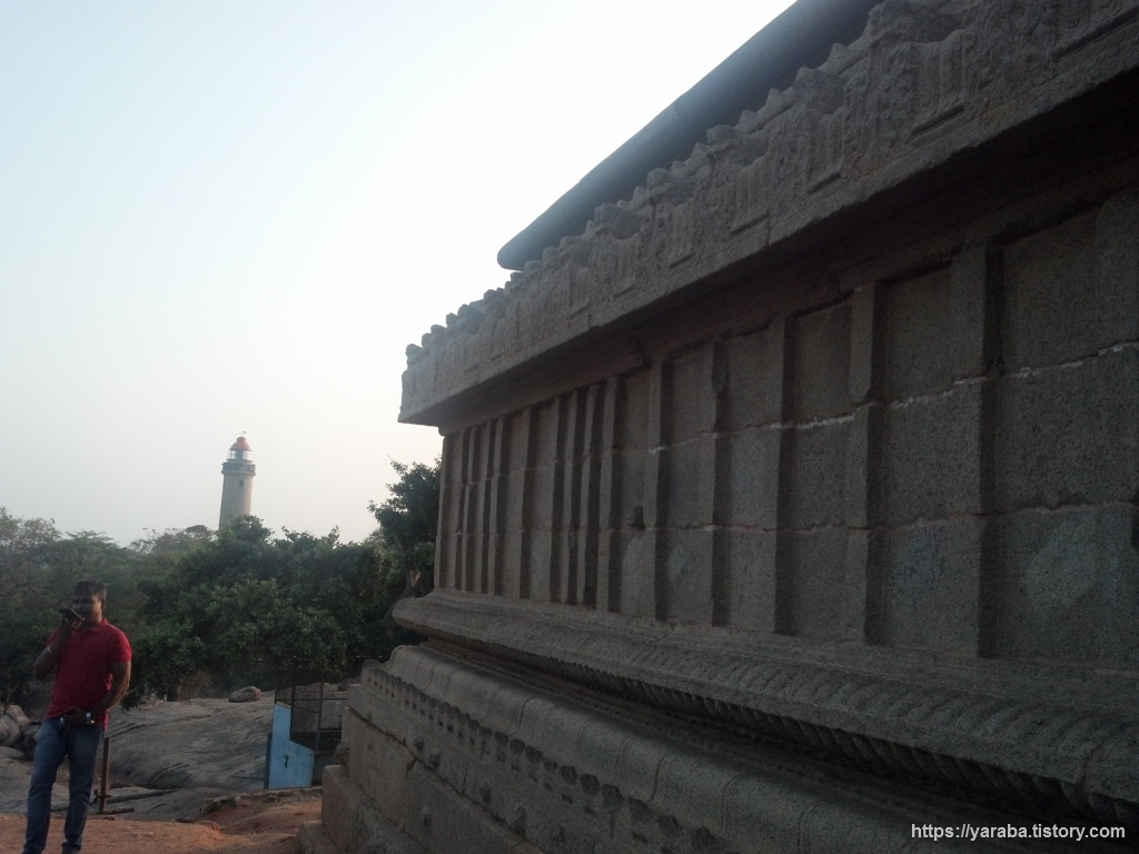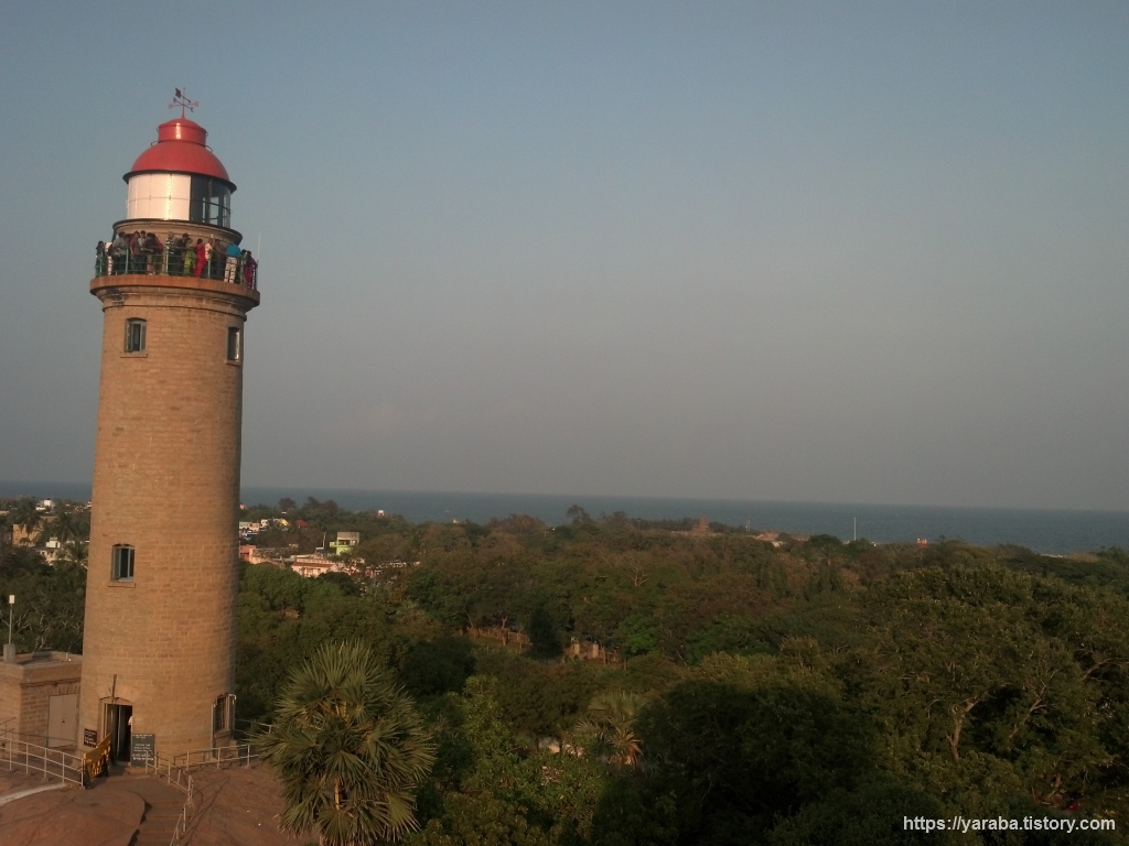 이스와라 사원에서 바라본 마말라푸람 등대(Mamallapuram Light House)의 모습. 등대 위에는 사람들이 가득한데 등대를 오르려면 입장료를 내야 하고 계단을 올라 일정한 시간이 지나면 무조건 내려가야 한다고 한다.