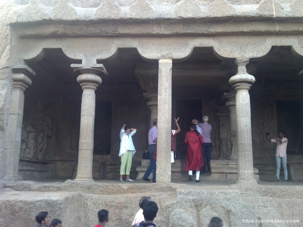 7세기 팔라바 왕조에 의해 만들어진 공간으로 훼손에 대한 염려가 없는지 돌계단을 통해 내부까지 자유롭게 관람할 수 있었다.