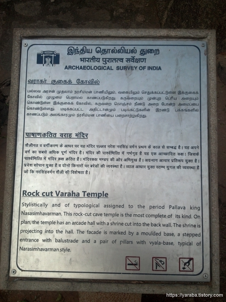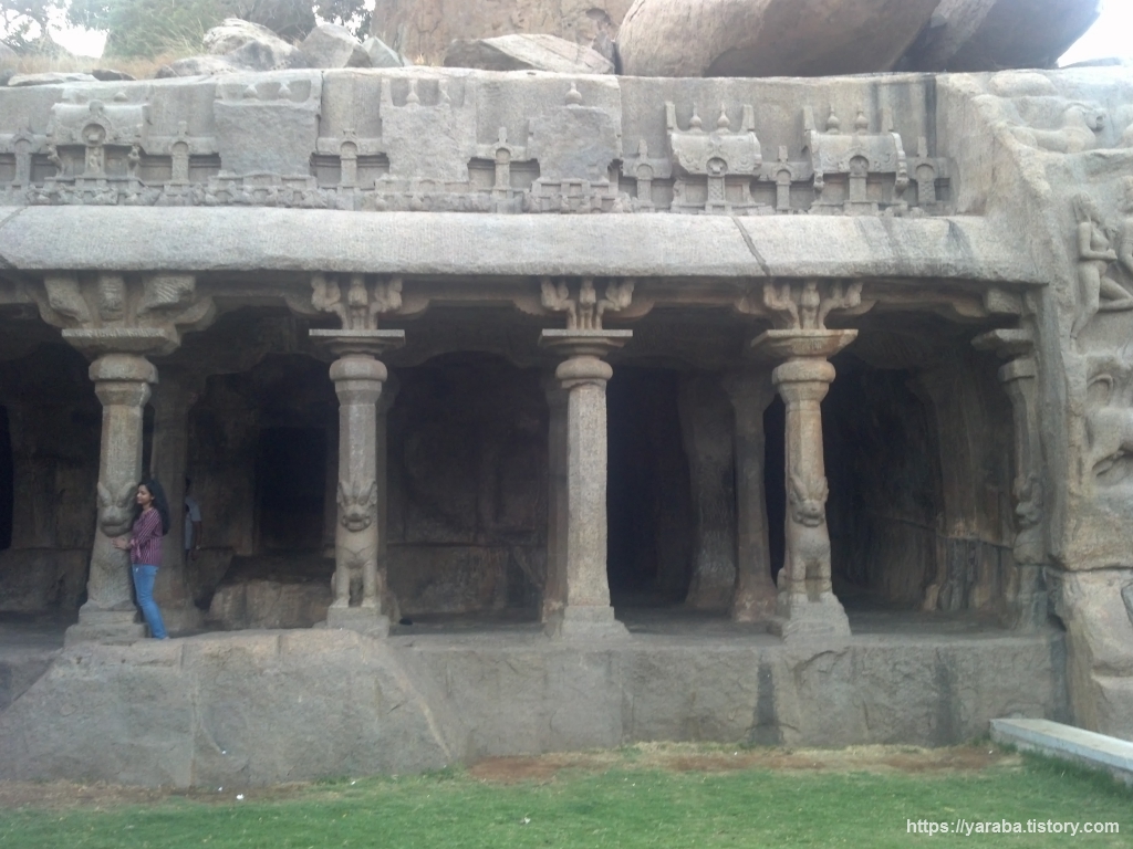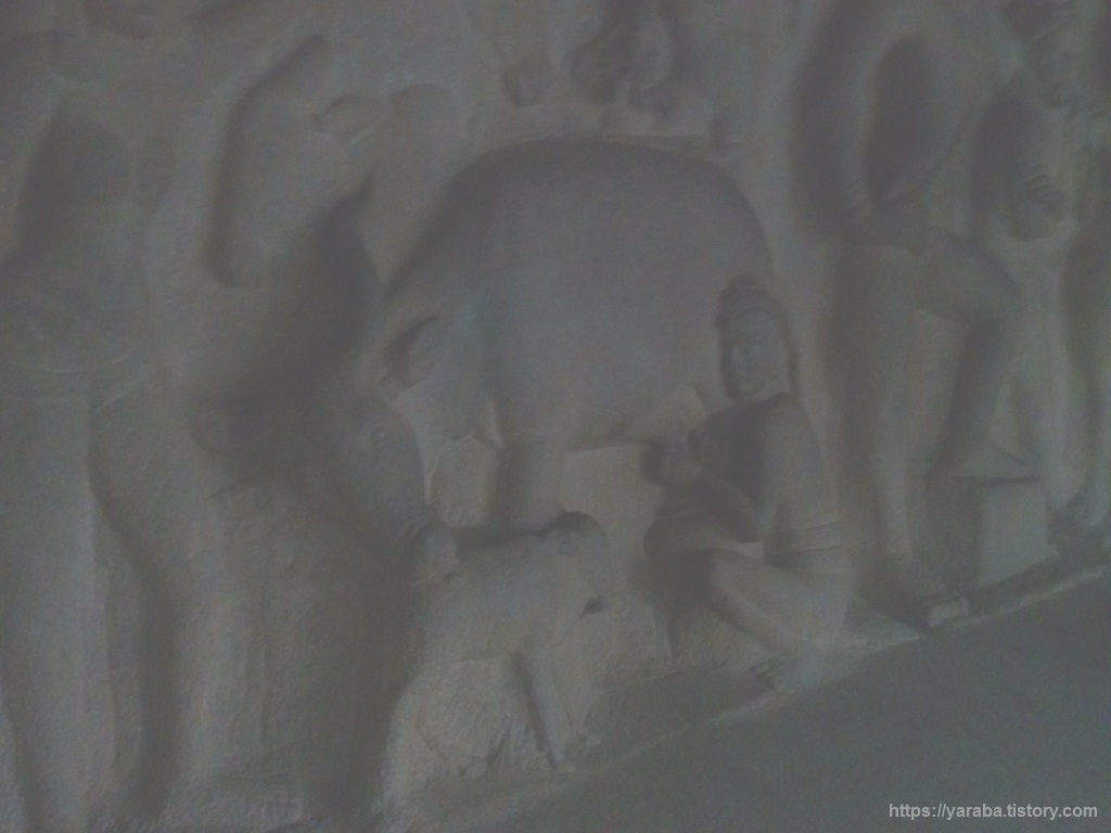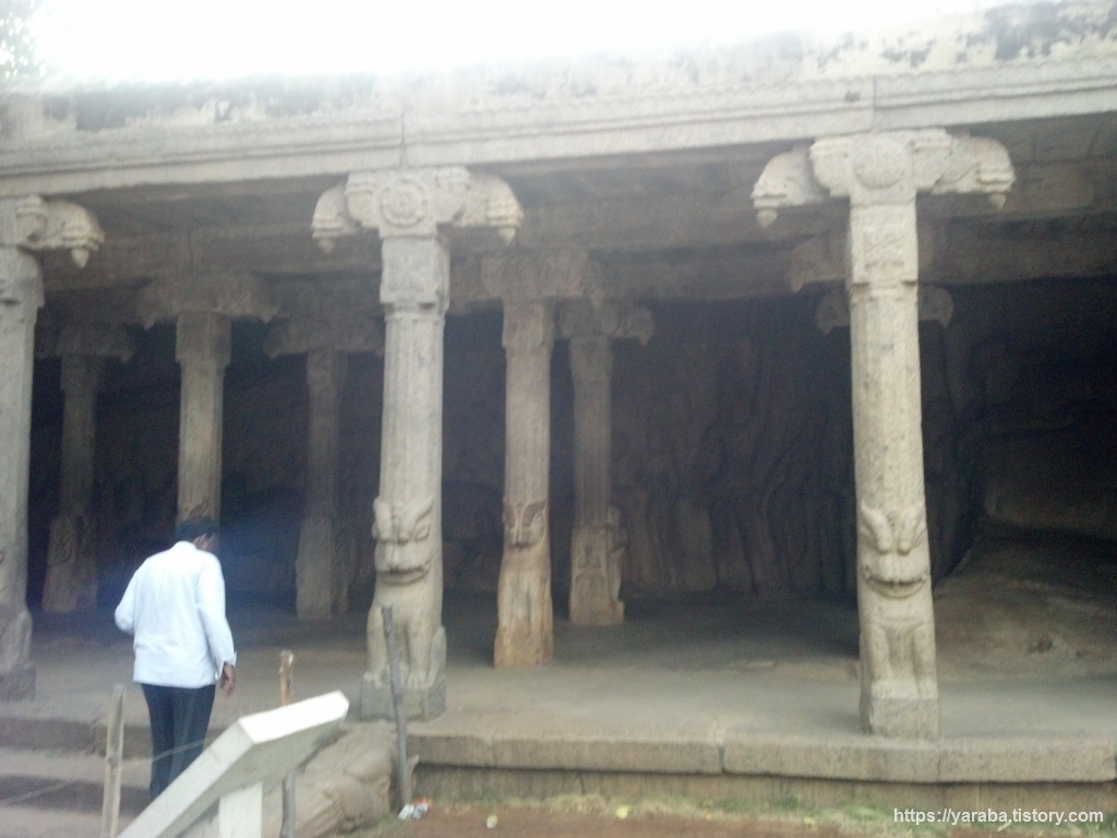 바라하 동굴 사원(Varaha Cave Temple)에 도착했다. 여기도 바위를 깎아 만든 사원으로 마하발리푸람에서 유일하게 아침, 저녁으로 의식이 열리는 장소라고 한다. 발랄한 인도 학생들이 사원을 가득 채웠다. 어릴 적 소풍이라고는 서울 주변의 왕릉을 가는 것이 전부였는데 이곳 아이들도 비슷한가 보다. 7세기 발라바 왕조에 의해 세워졌다.