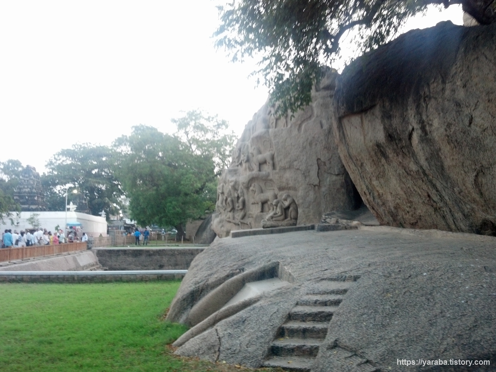 버터볼에서 환상적인 석양 감상을 끝낸 우리는 북쪽 출입문을 나와서 길을 따라 내려가며 "갠지스강의 하강, Descent of the Ganges"이라는 작품을 감상한다.