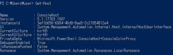위의 그림과 같이 파워쉘이 열리면 "Get-Host"명령으로 버전을 확인할 수 있다.