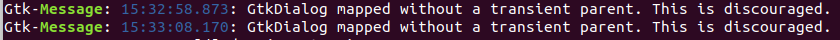 "Gtk-Message: 14:16:49.392: GtkDialog mapped without a transient parent. This is discouraged." 메시지 내용을 보면 내가 프로그램을 작성을 하면서 뭔가를 잘못한 것 같은데....... 하는 추측을 하게 한다. 문제를 해결하려면 일단 현상을 재현하는 것이 중요하므로 언제 이 경고 메시지가 나오는지 여러 번 테스트를 진행했다.