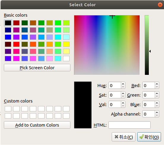 대화창을 생성하고 옵션을 지정할 때 clr_dlg.setOption(QColorDialog::DontUseNativeDialog); 처럼 옵션을 추가로 지정하면 위의 그림처럼 QT 자체의 대화창이 나오면서 경고 문구는 더 이상 나오지 않는다.