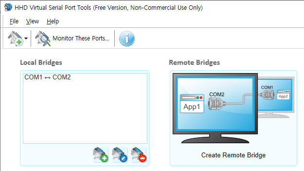 오픈소스 프로젝트인 "Null-modem emulator"를 사용하고 싶었지만 윈도우 10에서는 한계가 있었다. 시간도 없는 관계로 상용 프로그램 중에서 무료로 사용할 수 있는 것을 선택했다. HHD Software에서 운용하는 freevirtualserialports.com에서 다운로드하였다. 대부분 14일 사용 제한을 두고 있는데 이 프로그램은 구입해야 하는 확장 버전은 14일간 사용할 수 있고 그 이후에는 다시 무료 버전을 사용할 수 있는 형태이다.