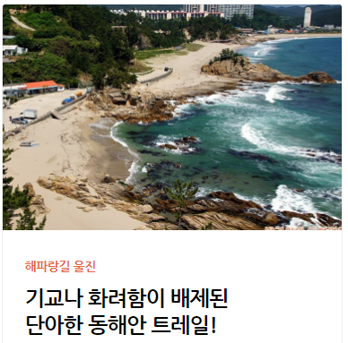 해파랑길 첫 페이지 지도에서 확인하려는 지역을 클릭해도 되고 해파랑길 구간 안내의 특정 지역을 선택해도 된다. 지역을 선택하면 해당 지역에 포함된 해파랑길 코스들이 나오고 특정 코스를 클릭하면 상세한 코스 정보가 안내된다.