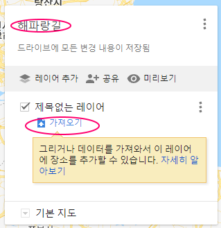 새 지도 만들기가 되었으면 지도의 이름을 입력하고 [가져오기]를 클릭한다.