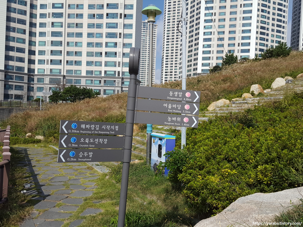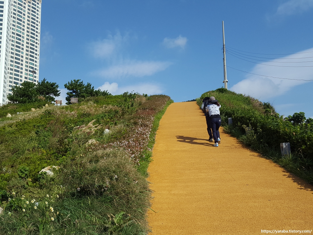 오늘의 목적지인 해운대 미포항은 보이지 않지만, 미포항 근처에 있는 엘시티 건물을 통해서 오늘 가야 할 목적지를 어렴풋이 가늠해 본다. 이때까지만 해도 겨우 겨우 힘겹게 숙소에 들어갈 거라고는 상상도 하지 못했다.