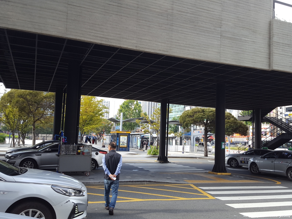 아침을 든든하게 먹은 우리는 해파랑길 1코스의 시작점인 오륙도로 걸음을 옮긴다. 여행 계획을 세울 때만 해도 사람이 두 명이고 체력 안배를 위해서 택시를 타고 이동할 생각이었지만, 막상 든든한 아침을 먹고 나니 사람도 많지 않을 것 같아서 버스를 타고 오륙도로 이동하기로 했다. 부산역 앞 택시 정류장은 손님을 기다리는 택시들로 아침부터 분주하다. 택시 정류장을 가로질러 부산역 광장 앞에 있는 버스 정류장으로 이동한다.