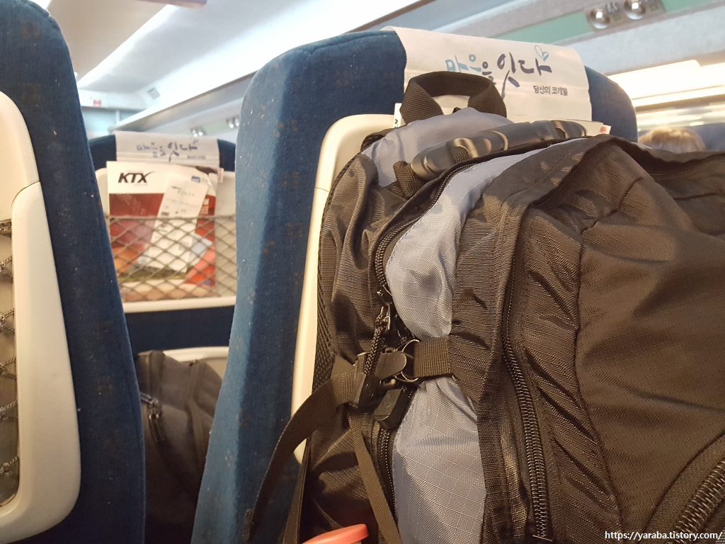 오랜 기간? 따져보면 얼마 되지 않는 장기간 걷기 여행의 공백을 떨쳐 내면서 5박 6일에 걸친 장기간 걷기 여행을 떠난다. 이른 새벽, 거의 첫차에 가까운 부산행 KTX에 몸을 실었다. 시간을 절약하려는 의도도 있지만 이 시간대의 기차는 예매 시 할인이 있다. 가벼운 배낭으로 허약한 체력을 보완하면 좋으련만, 두 사람의 배낭은 짐으로 꽉 차서 두툼하다 못해 뚱뚱하다. 배낭을 메고, 벗을 때마다 으싸! 아이고! 하는 감탄사, 아니 탄식이 절로 나온다. 해외 트레킹이라면 출국, 입국 수속 때마다 꺼내야 하는 불편함도 그렇고 망가질까 하는 걱정 때문에 노트북은 지참 목록에서 제외했는데, 국내 여행이라는 안이함 때문일까, 하루 일정을 끝내면 숙소에서 조금의 일이라도 해보겠다는 호기로 큼지막한 노트북도 챙겼다. 국내는 모텔도 인터넷은 빵빵하니까! 아직 쌀쌀하지 않은 날씨 덕택에 옷가지는 얇은 두세 벌의 여분만 챙기고 매일 빨래를 할 계획이다. 이 방법은 매일 땀에 절어 버리는 옷에도 불구하고 짐을 줄이면서 다음 날 냄새나지 않는 옷을 입는 방법이다. 문제는 식량이었다. 매 끼니를 식당에서 해결하는 것은 비용도 비용이지만, 적절한 시점에 적절한 식당을 만나는 것도 쉽지 않기 때문이다. 걷고 있는 지역 음식 중에 매력적인 것이 있다면 현지 식사로 해결하지만 되도록 삼시 세끼를 버너로 직접 밥을 해서 해결하기로 했으니 쌀과 버너, 밑반찬이 한 짐이다. 그렇게, 호기로운 부부의 해파랑길 걷기가 시작되었다. 이른 아침 여명을 뚫고 달리는 KTX 안에서 평화로운 여행의 시작을 누린다.