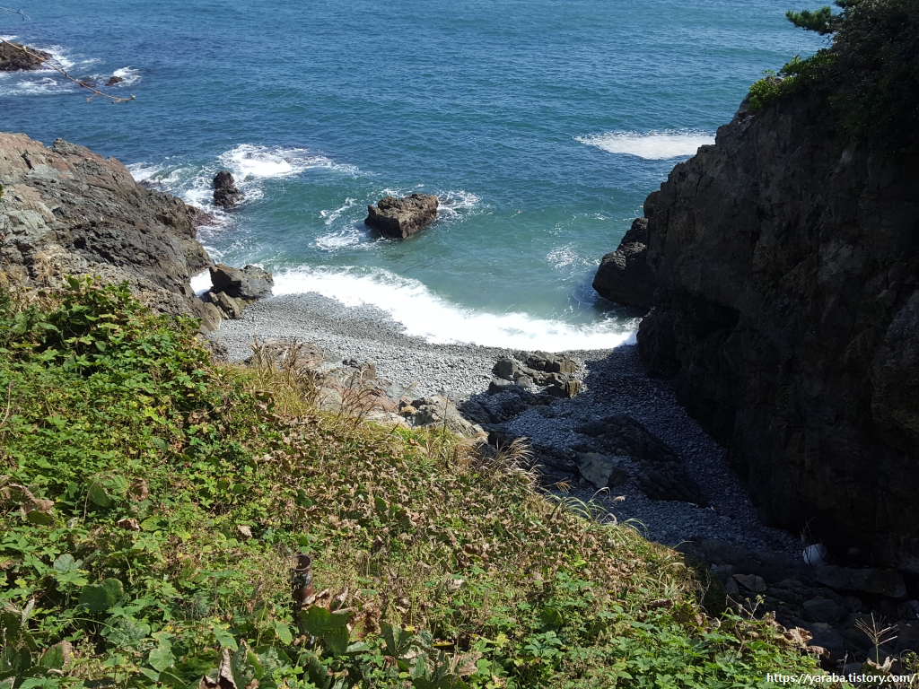 한참을 멈추어 서서 파도 소리를 들었던 장소. 커다란 바위 사이로 작은 자갈밭이 있었는데 파도가 몰려왔다가 다시 나가며 내는 소리가 가슴을 울리는 장소였다. 커다란 바위로 인해 소리가 더 울리는 효과 때문이었을까? 정말 소리가 좋았다.