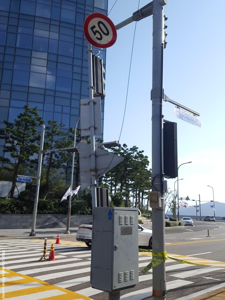 마린시티 가는 길에 만난 꺾어진 신호등. 바람이 얼마나 센지, 모자도 쓸수 없을 정도이니 신호등이 남아 날까? 하는 생각이 들기는 하는데 대체 저 고층 빌딩들은 괜찮나? 하는 생각이 들었다. 실제로 "빌딩풍"이라고 해서 태풍이 불어오는 경우 해상의 바람 속도보다 빌딩 주위가 두배 이상 바람이 세다는 측정 결과가 있었다. 매년 시도 때도 없이 신호등이 부러진다면 안전 위험도 있으니 신호등을 다른 방식으로 설치해야 되는 것 아닌가 싶었다.
