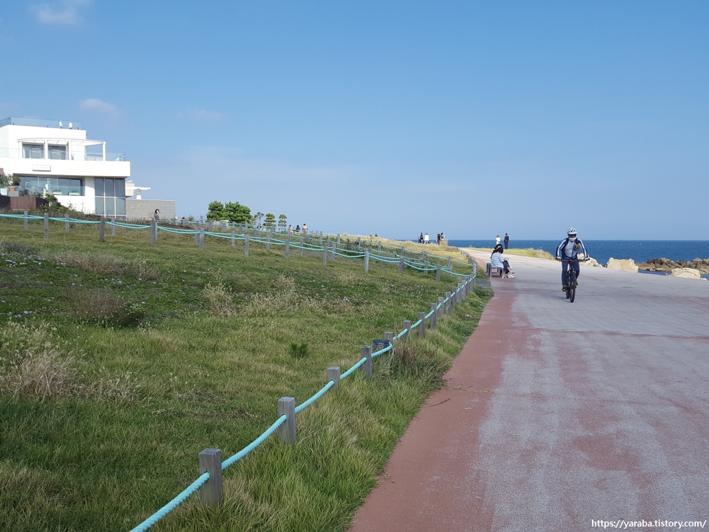 아무튼 호텔 앞의 바다, 바위, 풀밭이 어우러진 아름다운 산책을 지나면 야트막한 언덕을 넘으면서 길은 오랑대 공원으로 이어진다.