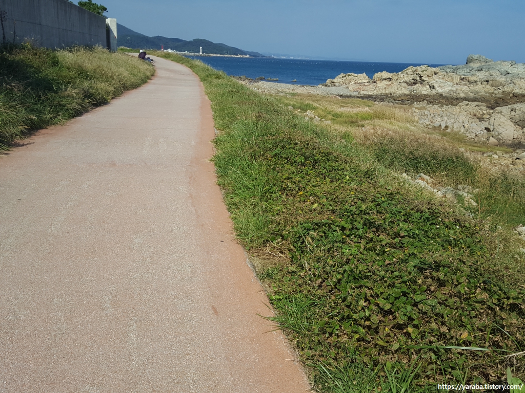 수산 과학원과 힐튼 호텔 사이의 동암항. 2코스 목적지인 대변항까지 4km가 남았다. 몸 상태가 좋다면 1시간이면 빠른 걸음으로 충분하겠지만, 이제는 너무 멀어 보인다. 사실 옆지기는 수산 과학원 담장에 설치된 벤치에서 한참을 누워 있었다. 나의 몸 상태도 엄청 지쳐 있기는 하지만, 거의 환자 수준으로 누워 있었던 동반자가 다시 배낭을 메고 걷기 시작했다는 것만으로도 감사한 일이다.