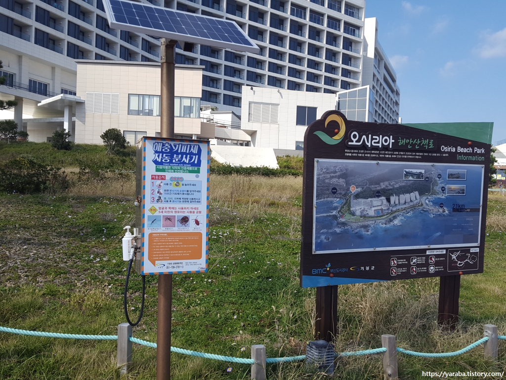 오시리아 해안 산책로는 동암항에서 오랑대 공원을 지나는 2.6Km에 이르는 쾌적한 걷기를 즐길 수 있는 곳이다. 물론 길이 잘 포장되고 정리된 만큼 사람들이 많다는 단점은 있지만 아름다운 길인 만큼은 확실하다.