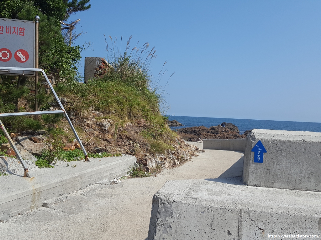 방파제 옆으로 통로 같지 않은 좁은 통로가 있는데 이곳으로 해안길로 접근한다.