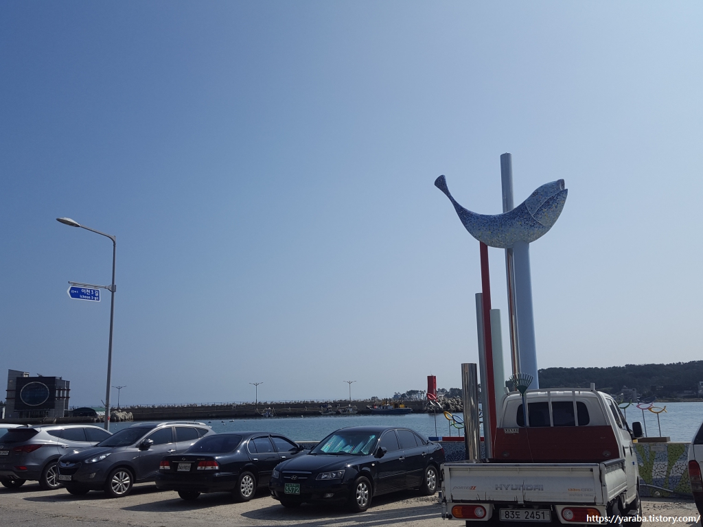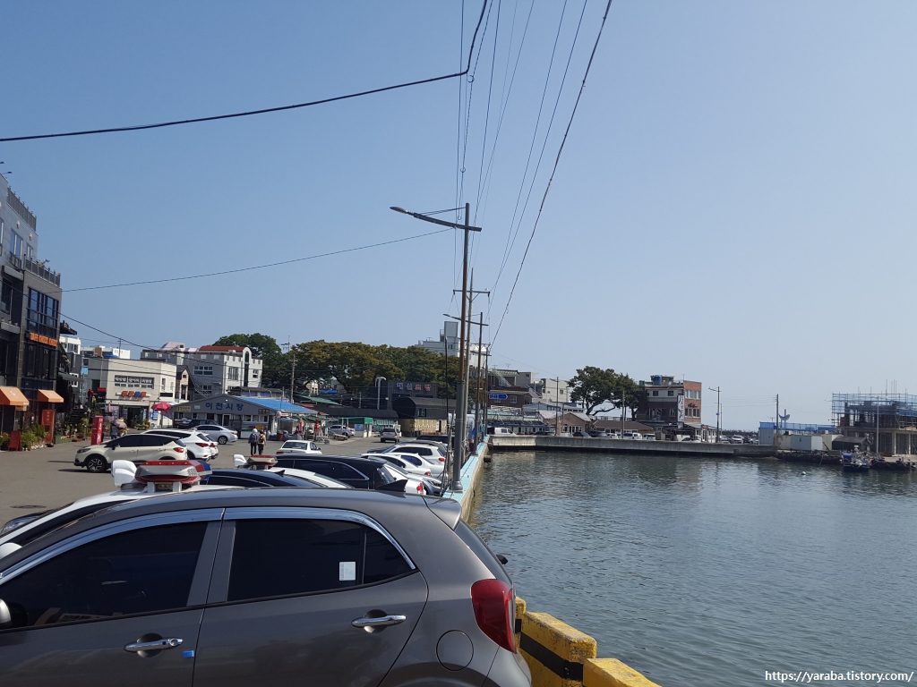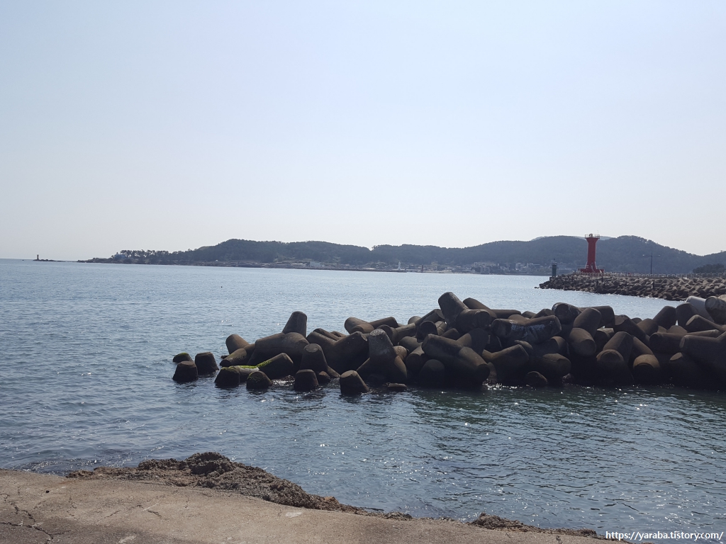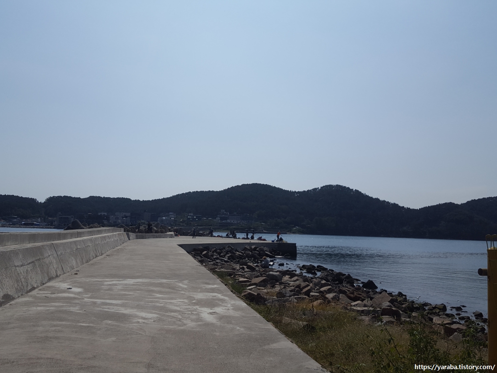 횟집 앞에서 바라본 이동 방파제 쪽의 모습이다.