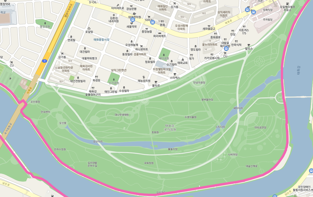 해파랑길 7코스는 국가정원교 아래를 돌아서 태화강 국가 정원 주위를 돌아서 간다. 그런데, 태화강 국가 정원은 입장료도 없고 들고 나는 것도 자유로우므로 은하수 정원 - 십리대밭 은하수길 - 국화정원 - 새터 다리를 거쳐서 공원을 빠져나오는 것도 방법일 듯싶다.