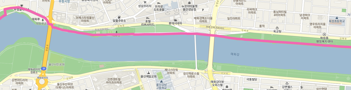 태화강 국가 정원을 지나면 강변로가 태화루 근처에서 잠시 끊긴다. 태화로 도로로 올라갔다가 태화루를 지나 태화교에서 다시 강변으로 내려와 길을 이어간다. 번영교를 지나면 학성동에 이른다.