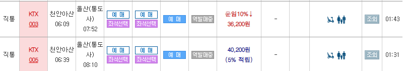 걷기 여행을 위해서 하루 전에 출발지에 도착하는 것도 생각해 보았는데, 7코스 시작점인 태화강변까지는 KTX로 쉽게 접근할 수 있으니 아침 일찍 KTX를 이용하기로 했다. 일찍 출발하는 기차는 할인이 있거나 회원 적립이 있다.