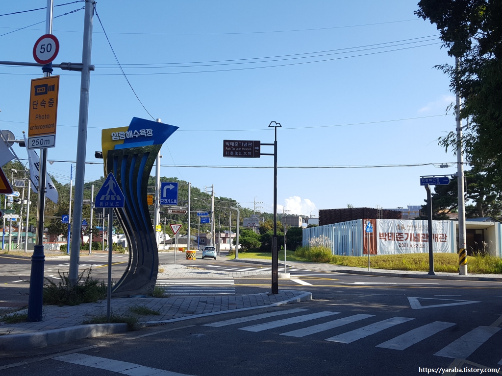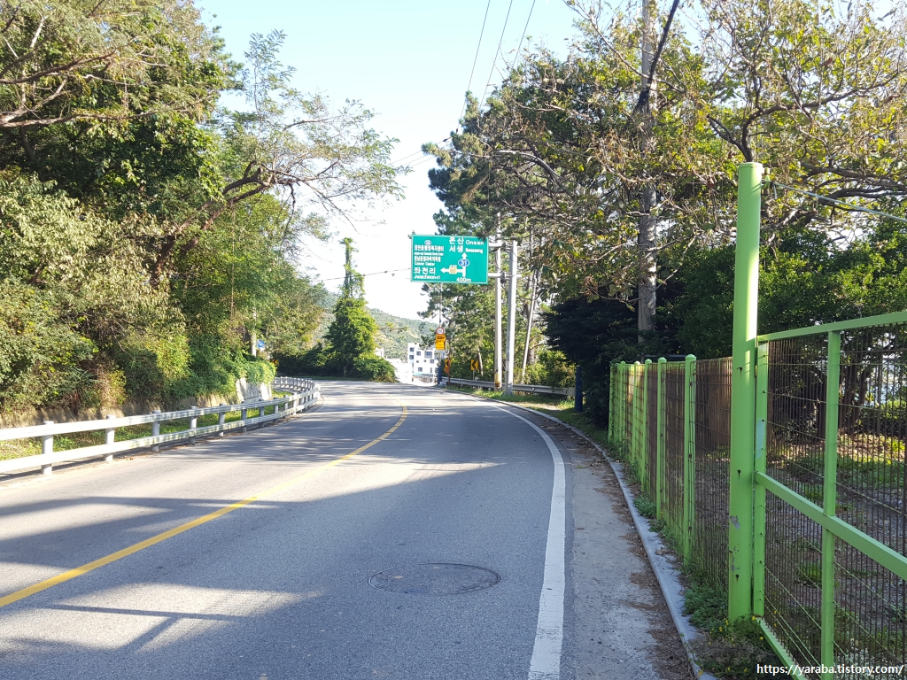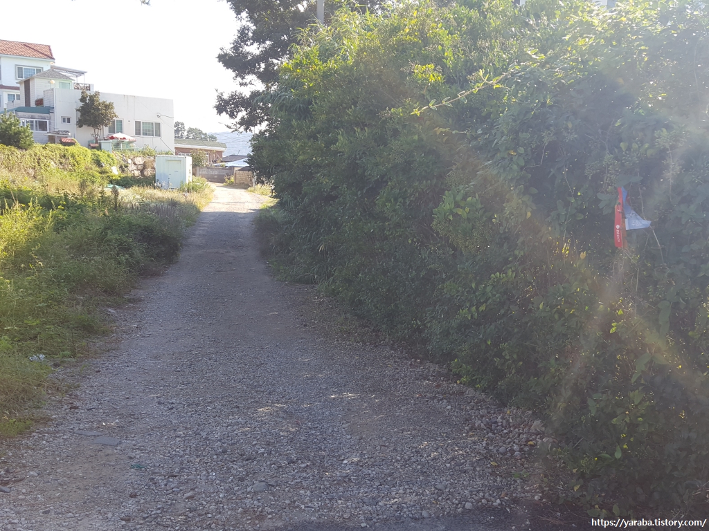 임랑 해수욕장에 들어갈 때까지는 도로변을 따라 걸어야 한다.
