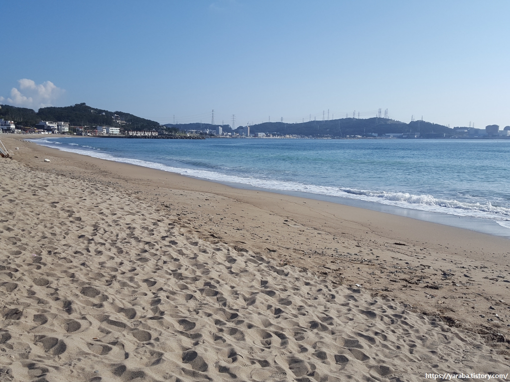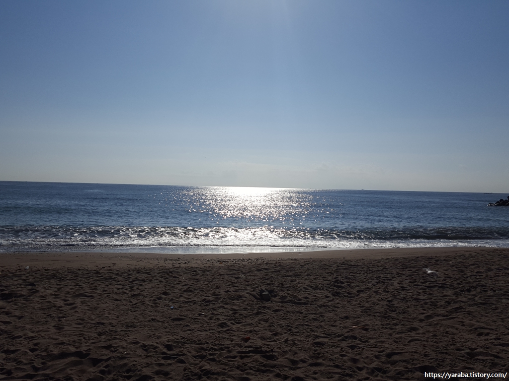 고운 모래사장이 이어지는 임랑 해수욕장에 도착했다. 은빛 물결이 반짝이는 수평선을 보고 있노라니 자연스럽게 멍 때리게 된다.