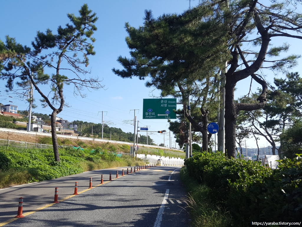 임랑 해수용장을 지나서 월내로 가려면 다시 도로변으로 나가야 한다.