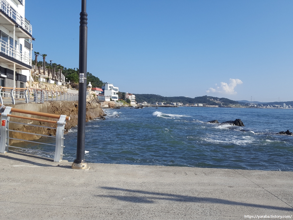 숙소 앞 문동 방파제를 떠나 임랑 해수욕장으로 가는 길에는 해안을 따라 럭셔리한 유명 카페들이 줄을 잇는다. 5천 원으로 바다를 보면서 커피와 함께 분위기 있는 시간을 보내는 것도 나름의 즐거움이겠다 싶다.
