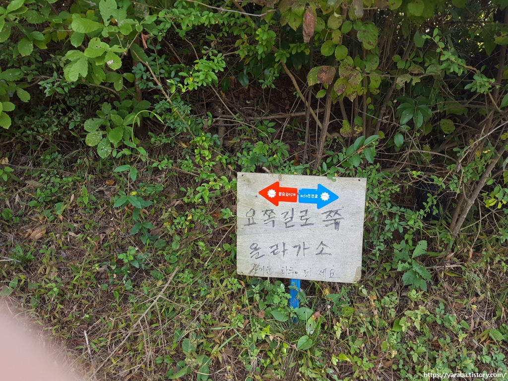 봉대산을 넘어오면 울산시 울주군인데 이곳부터는 해파랑길의 표지판이 조금 달라졌다. "몇 미터 앞에서 우회전"처럼 아주 친절한 표지판이다.