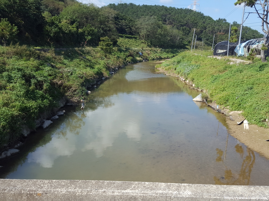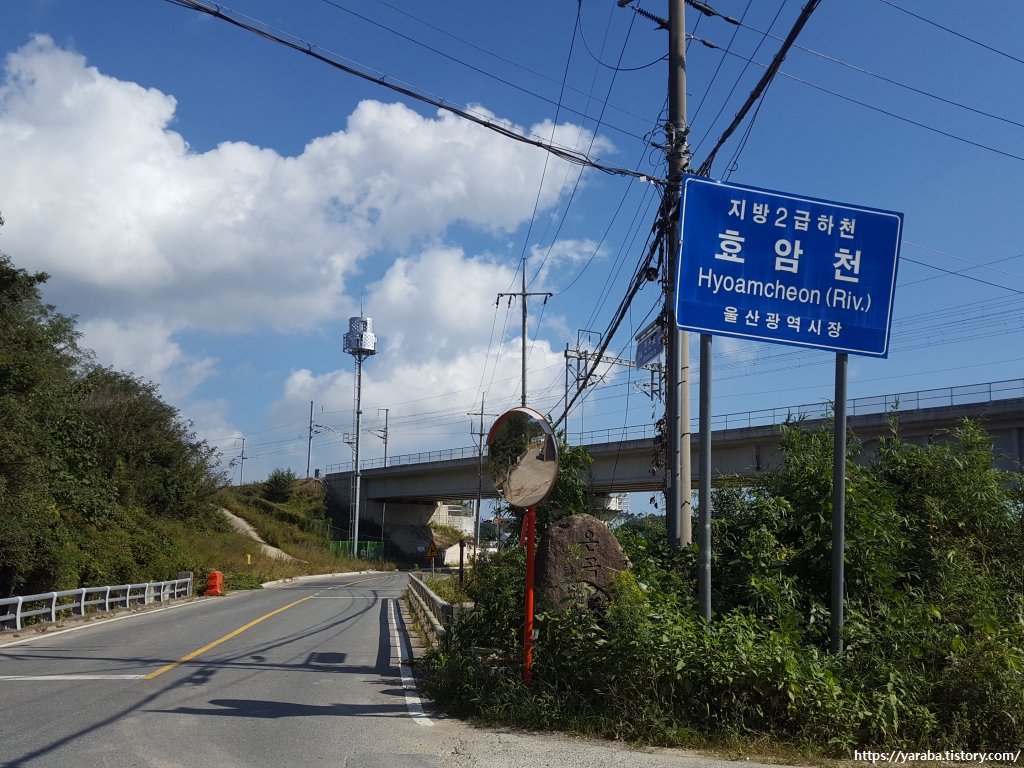 효암천이 크지는 않지만 한쪽으로는 이런 풍경도 있다. 구석 표지판에는 한수원과 함께 이곳에 치어 방생 사업을 했다고도 한다. 일회성으로 돈만 쓰는 사업이 아니라, 장기적인 환경 보호가 되면 좋겠다 싶다. 상류에 즐비한 산업단지가 하천에 영향이 없었으면 좋겠다.