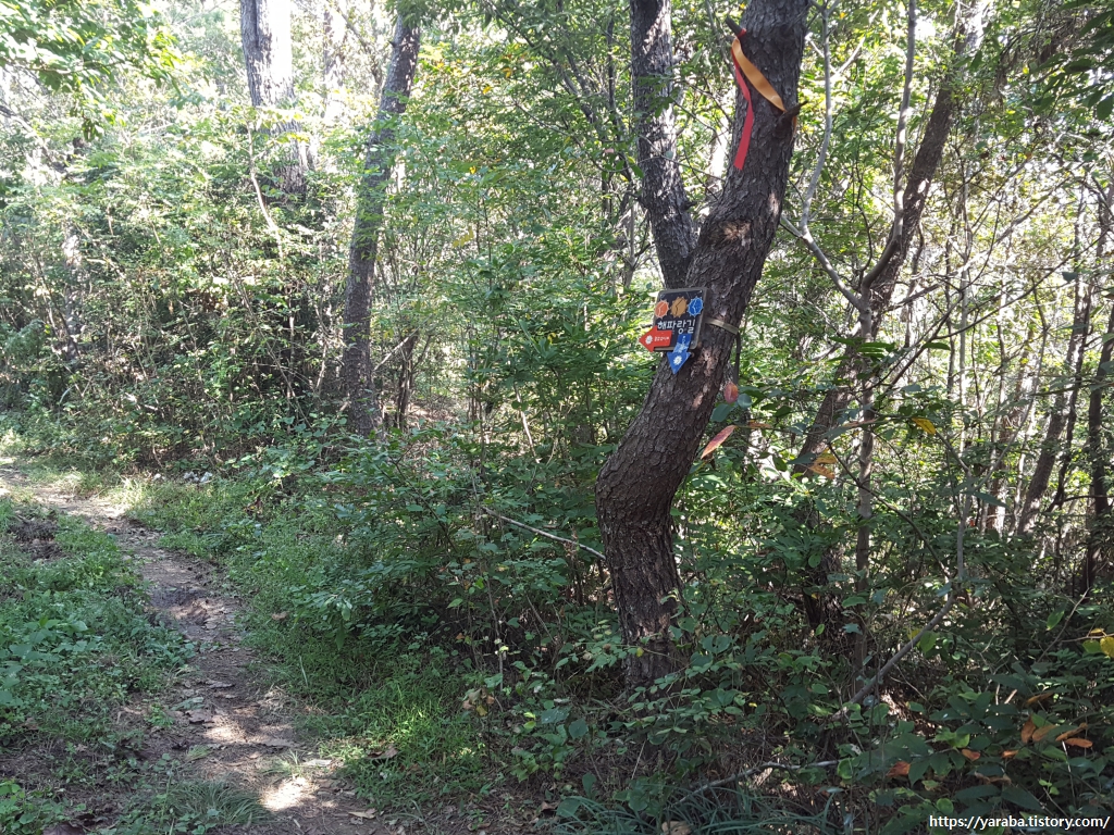 봉대산을 넘는 이 길은 마을 오솔길 같이 정겹다. 해파랑길 리본 시그널을 바라보면서 천천히 산길을 걷는다.
