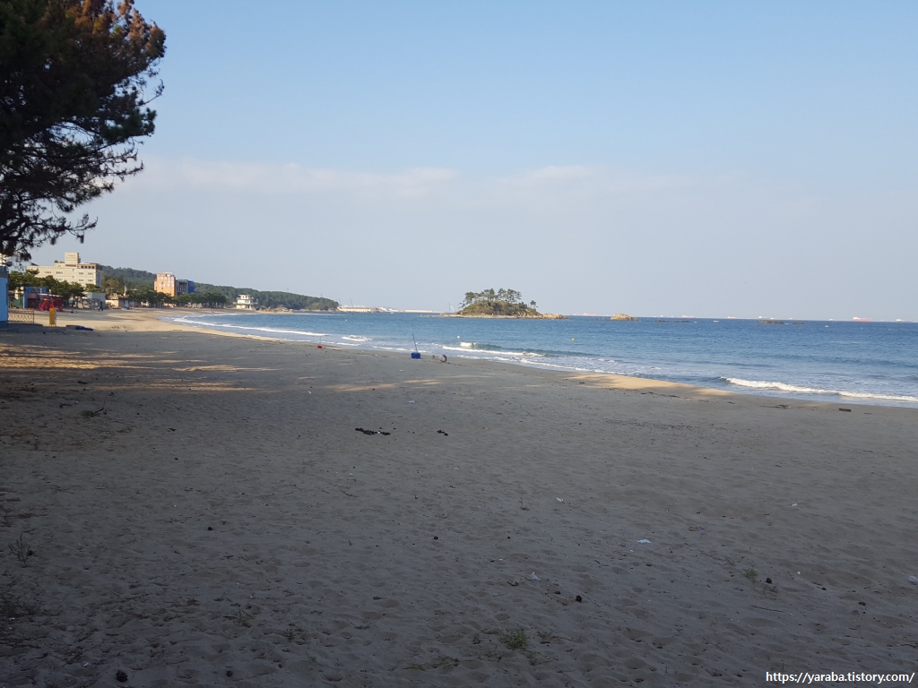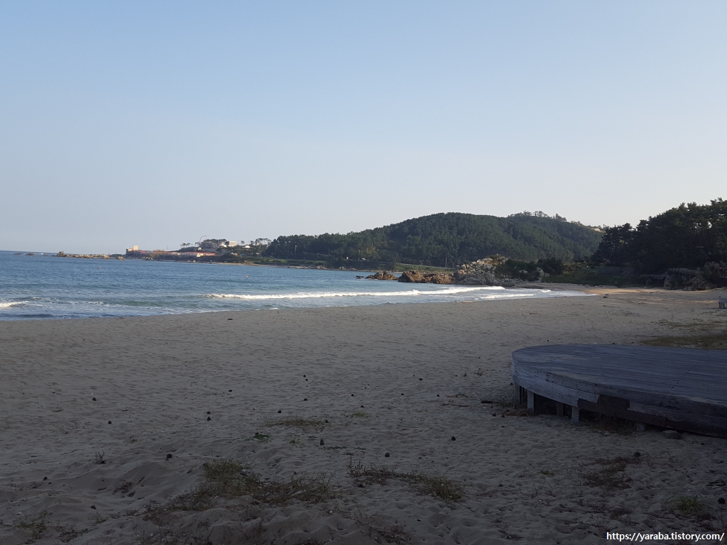 소나무 숲과 고운 모래, 잔잔한 파도의 한적함을 누리며 숙소로 향한다.