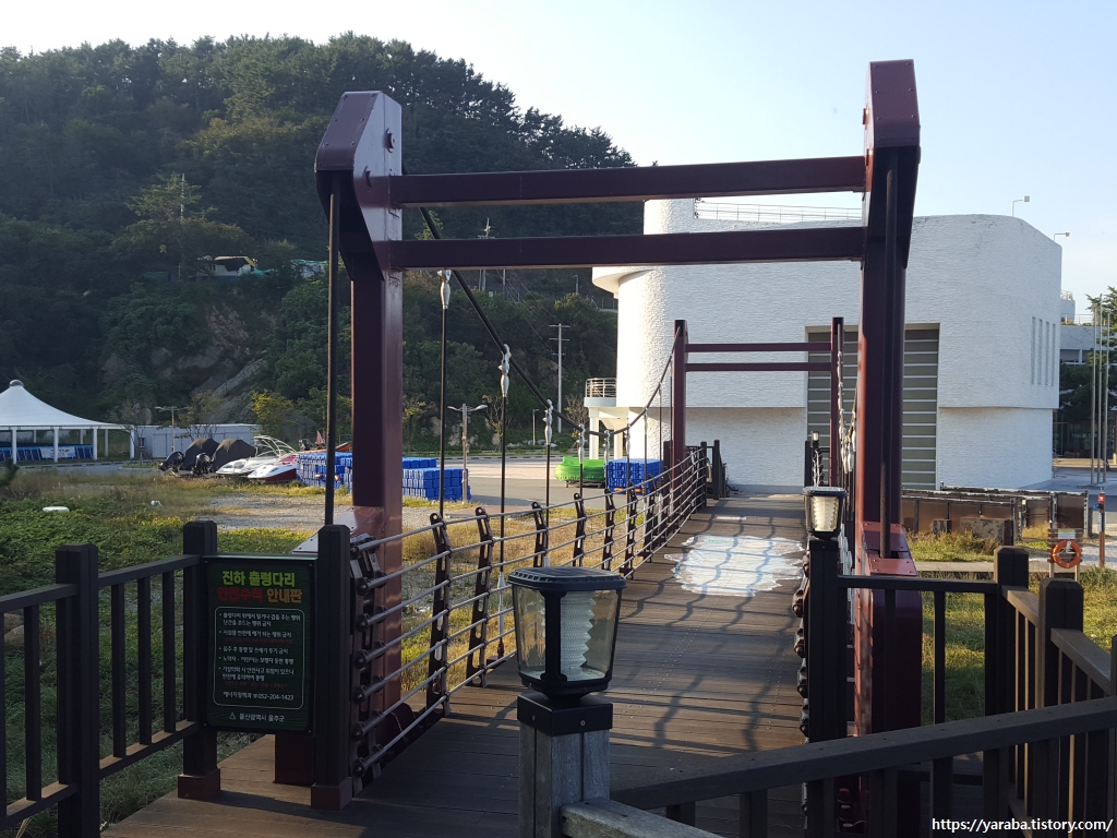 이곳에 왠 출렁다리지? 하는 의문이 들었던 장소. 짧게 건너서 진하 해변으로 접근할 수 있다.