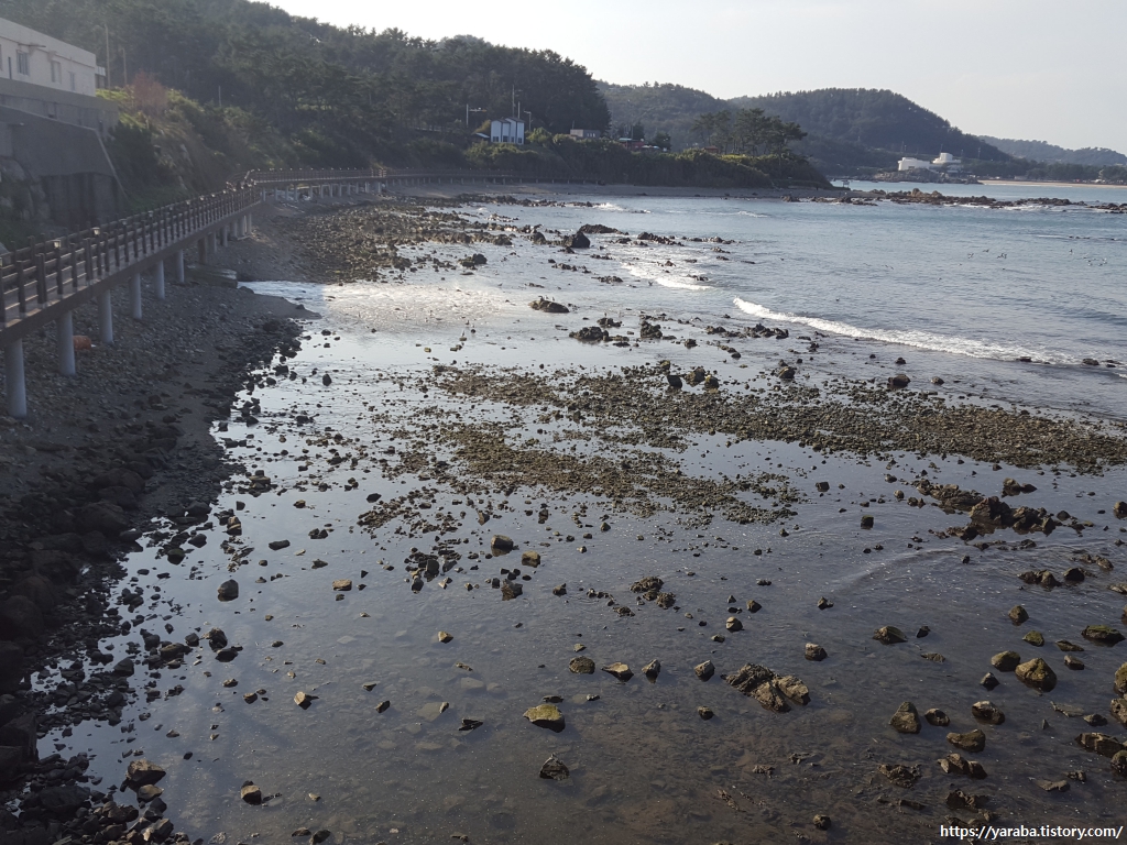 산책로는 중간에 잠시 해변 자갈길과 오솔길을 걷기도 하지만, 대원 수산 뒤편 해안으로 만들어진 데크길을 이어간다.