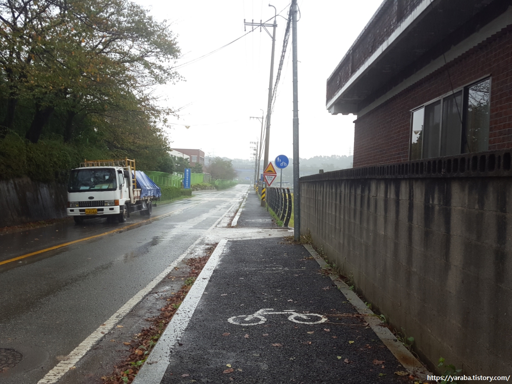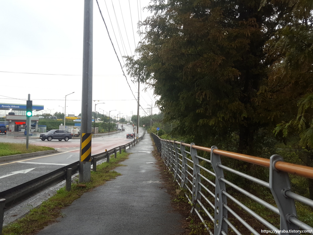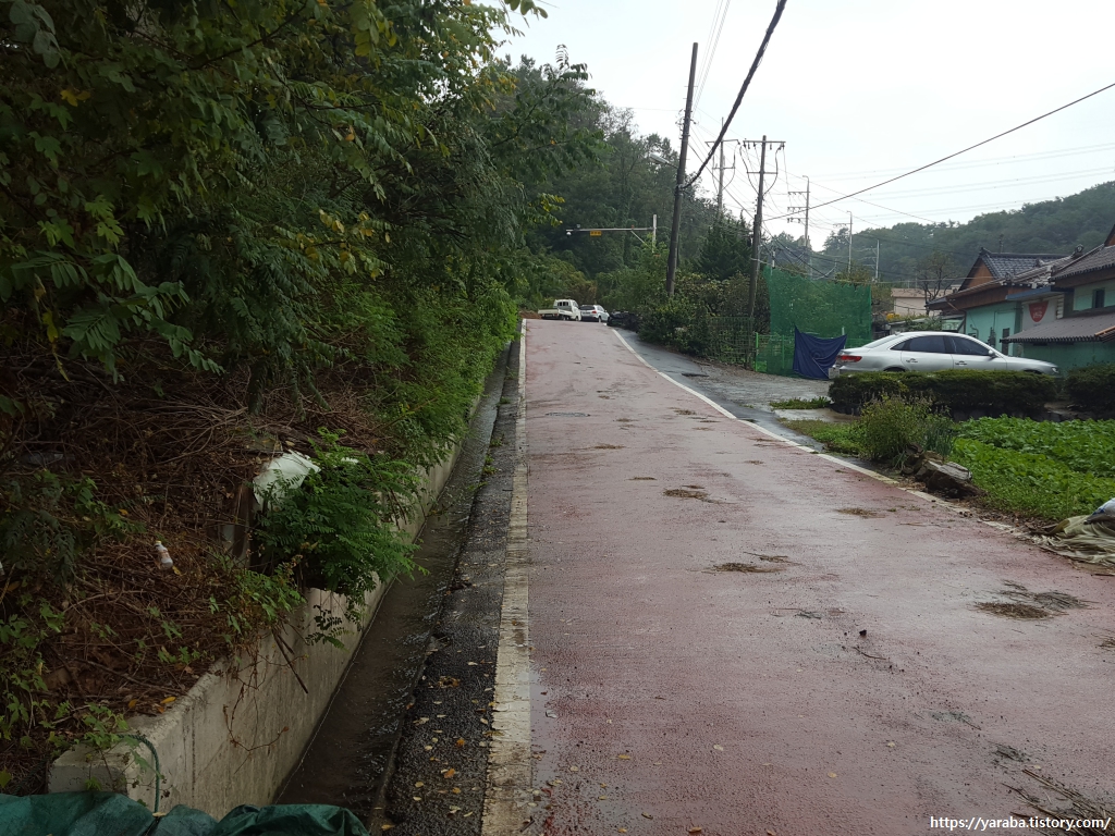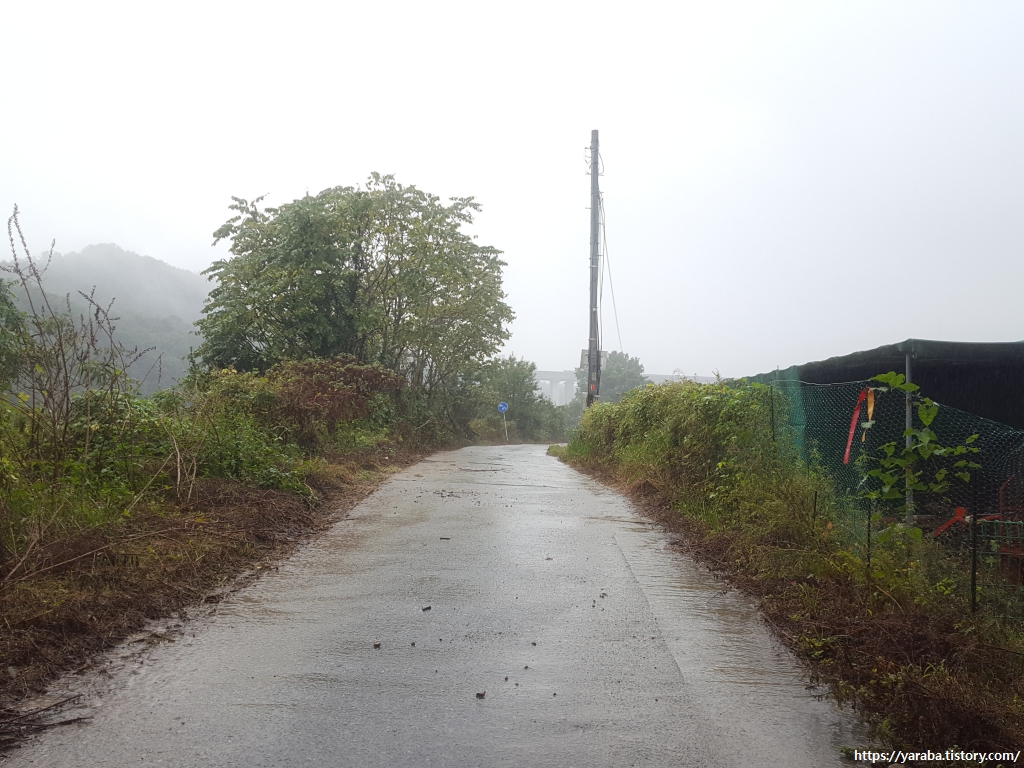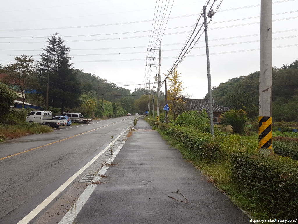 양동 마을에서 나온 길을 올라가다 보면 14번 국도와 다시 만나게 되는데 약간의 오르막 길이지만 14번 국도와 달리 다니는 자동차가 거의 없어서 조용히 걸을 수 있는 길이었다.