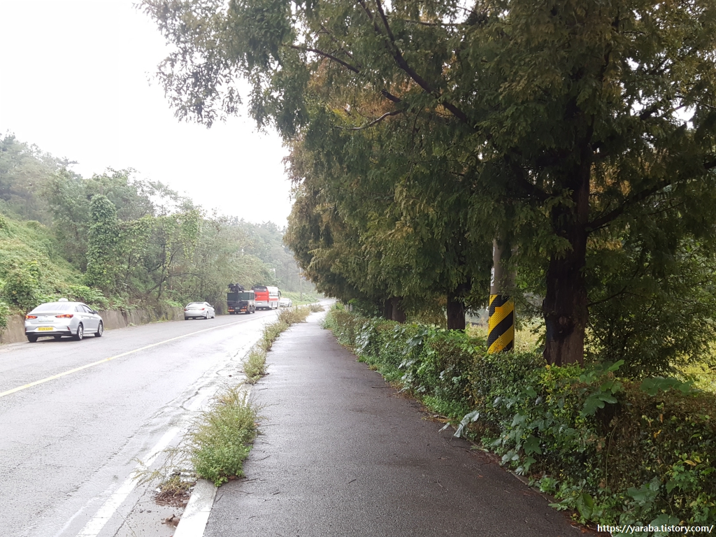 14번 국도를 만나는 지점 근처에는 메타세쿼이아 나무가 가로수로 심어져 있다.