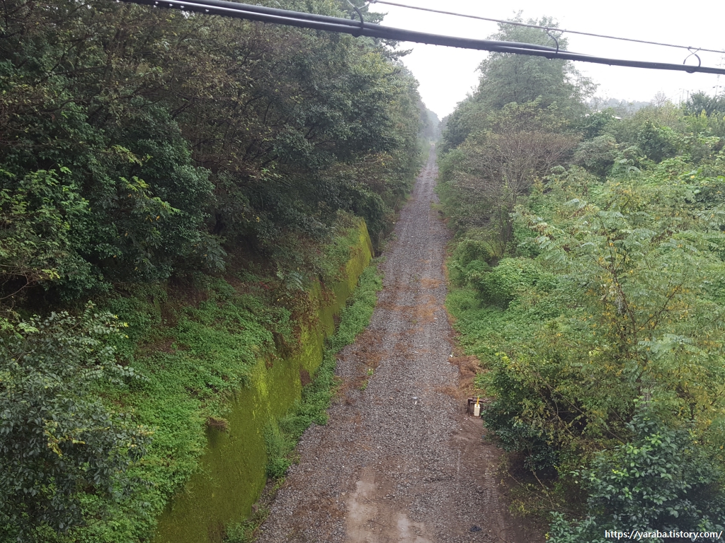 덕하로를 걸어 내려가며 만나는 길 주변의 풍경중 하나. 몇 년 전까지만 해도 기차가 지나가던 철로가 있던 자리는 마을 주민들의 텃밭이 되었다. 이 정도의 경사는 주민에게 문제가 될게 아니다. 유럽의 포도나무 밭은 경사도가 70도 이르는 곳도 있으니 그에 비하면 이 정도는 양반이다.