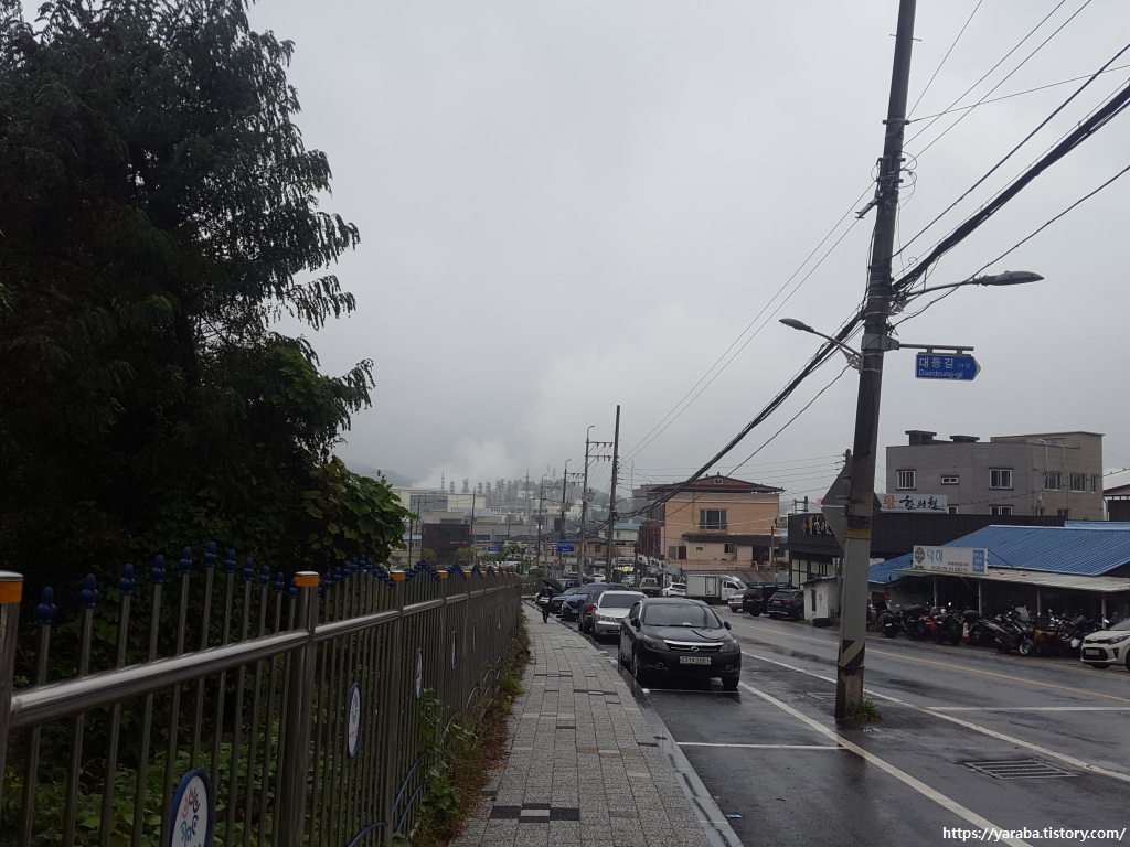 사실 덕하역과 청량읍 사무소가 있는 곳은 주소상으로는 덕하리가 아니라 청량읍 상남리이다. 청량읍 읍내의 모습이다. 5코스의 종점인 덕하역 인근에는 식당이나 마트는 많았지만 마땅한 숙소가 없다는 점이 단점이다. 우리 부부가 묵었던 모텔은 인터넷 예약이 되질 않아 전화로 힘들게 예약했었다. 규모는 작지 않았지만 시설과 청결 등 많은 부분이 지금까지 묵었던 숙소 중에서는 최악이었다. 비를 맞은 데다가 일찍 도착한 숙소에서 기분 좋게 쉬지 못했다는 아쉬움이 컸다. 근처 공단에서 일하시는 분들을 대상으로 하는 숙소라 그런 모양이었다. 울산 시내로 들어가거나 온산 읍내에서 숙소를 구하는 편이 좋을 듯하다. 아무튼 이렇게 5코스를 마무리한다.