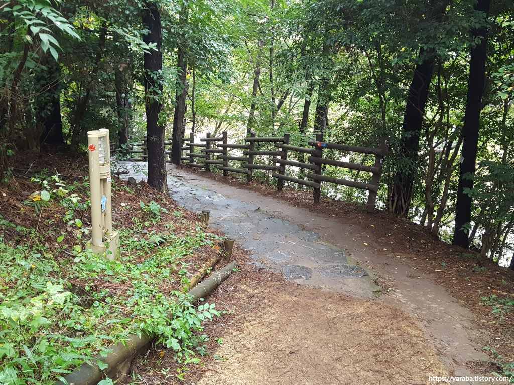 숲을 지나 산책로를 내려가면 신선로라는 큰길을 만난다.