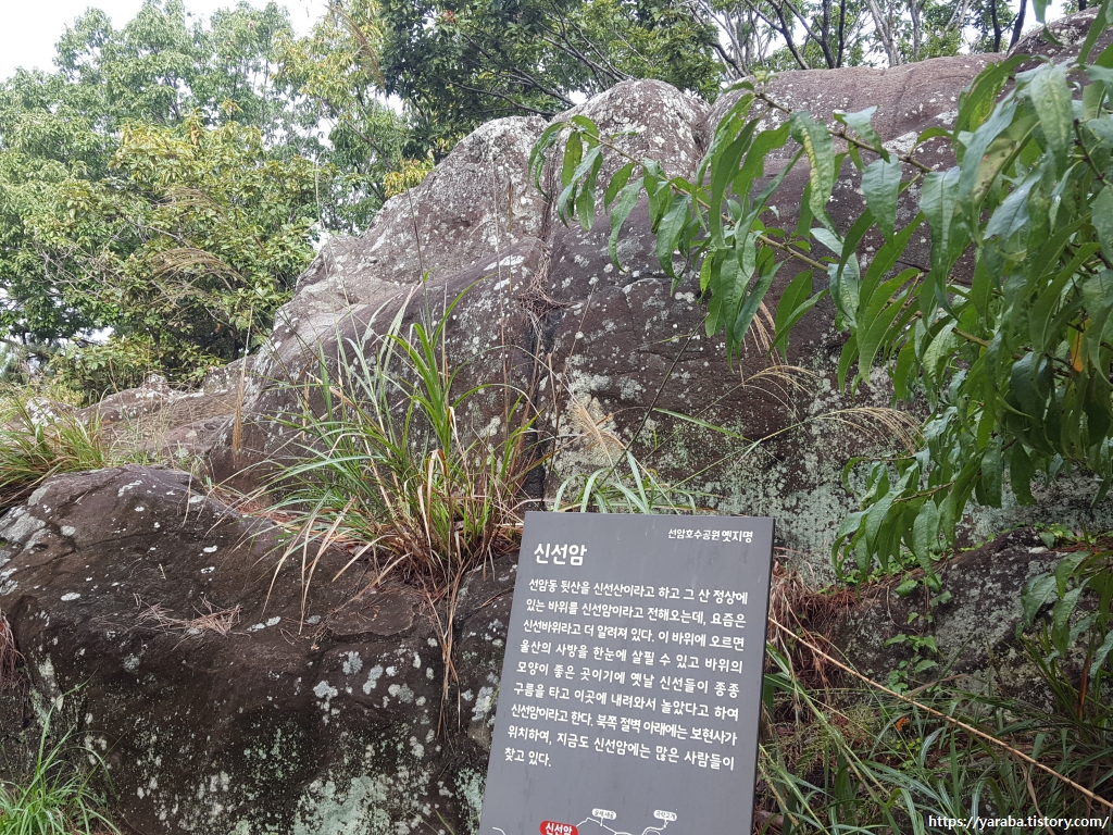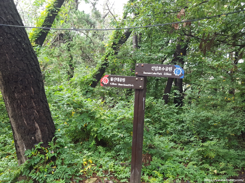 높지 않은 산이지만 산 정상에 오르면 주변 풍경을 한눈에 조망할 수 있는 곳이다. 북쪽으로는 야음동을 시작으로 태화강 방면으로 아파트 단지가 이어지고, 남쪽으로는 방금 지나왔던 선암 호수 공원을 볼 수 있다. 야음동이란 이름이 특이해서 그 유래를 알아보니 조선 숙종 때로 거슬러 올라가는 유서가 깊은 동네였다. 바람이 불면 동네 뒷산에 소리가 들린다고 해서 야음리라 불렀다고 한다.