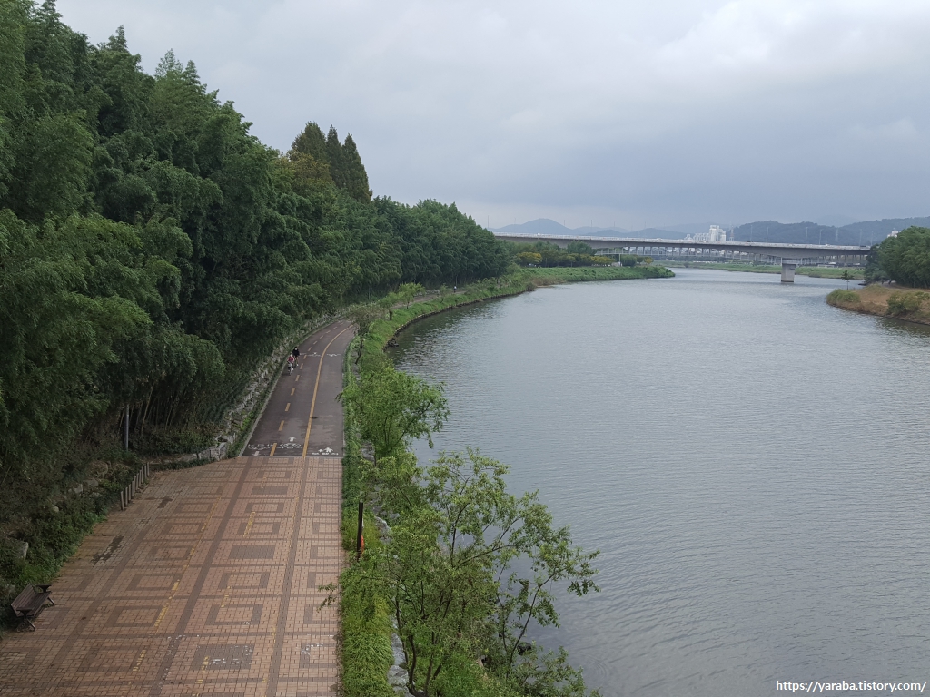 드디어 해파랑길 6코스의 종점인 태화강 전망대에 도착했다. 일단 강변 산책길로 내려간다. 처음부터 대나무 숲이 오랜 시간 걸어온 지친 객들을 맞아준다.